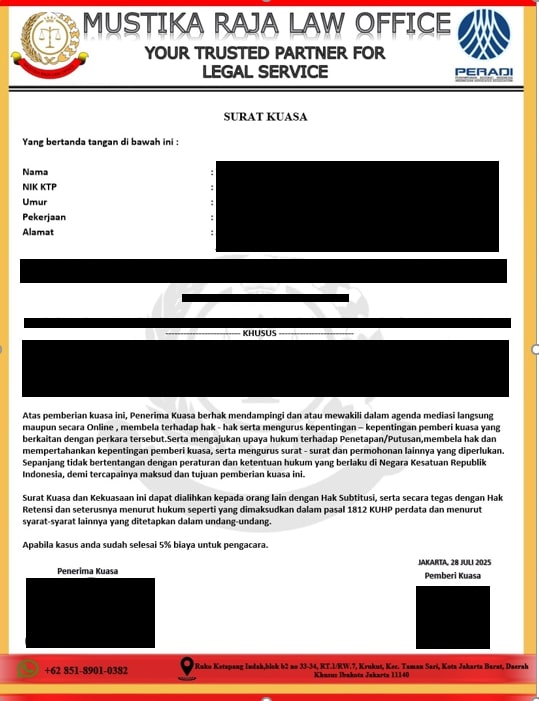 Hati-Hati Penipuan Mengatasnamakan Mustika Raja Law Office